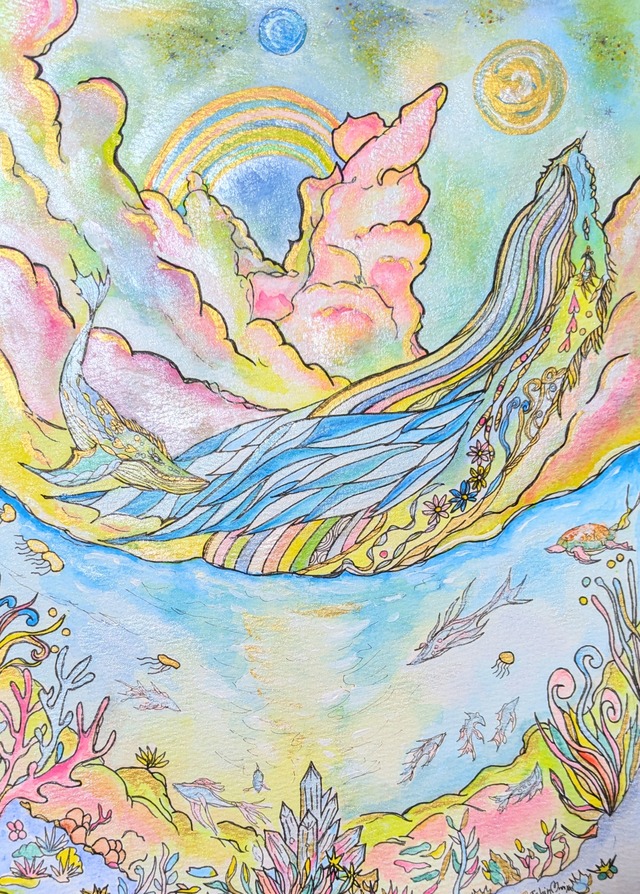 【聖海ノ鯨】 地球には違う時空間が存在すると云われています 四次元に生成された世界は 上も下もなく、海も空も陸も境界が曖昧です 愛や癒しのエネルギーは 四次元に存在することができます 他のエネルギーは四次元空間へ昇華することはできません さぁ 目を瞑り ゆっくりと息を吸い込み 癒しの空気を貴方様のカラダのなかへ ***==*===*==*==*==*===*** この度、一ノ宮 優二 アートをご覧いただき 誠にありがとうございます♡ すべての絵画に愛を込めて 世界に一枚だけのオリジナル絵画をあなた様へ♡ 現物の絵画は、写真の絵画に比べ、エネルギーを感じてくださると思います すべての絵画に、個性があり、あなた様を幸せへ導いてくださいます ◆一ノ宮優二について 神ノ遣イシリーズでは、神ノ遣イとなる動物たちを描かせて頂きました その評価は、少しづつ認められ、ニューヨーク・パリへの出展をさせて頂くまでとなりました 海外出展時に発生した費用は、応援を頂いている皆様からのクラウドファンディングのご支援にて挑戦させて頂きました 本当に絵を通して「人」との「ご縁」が繋がり、しあわせが広がりました そのようなパワーを、この子たち(絵画)はもっています 愛し、愛される世界はすばらしいです *もぉっ~と、一ノ宮優二について、深く知りたい方は 左上のメニュー「三」>PROFILEをタップしてください✰ 知らない世界があると思います ***==*===*==*==*==*===*** ◆額縁プレゼント♡ ※額縁はご支払いが確認でき次第、仕入れます そのため配送まで1週間程度お待ちくださいませ ◆日本国内送料無料♡ ◆サイズ A4サイズ(210×297mm) + 額縁 ◆素材 水彩画用紙(中性子) (作品完成後にコーティング処理をしております。熱や紫外線のダメージをうけづらくしております。皆様のおうちのどこでも飾れるようしております) ◆絵画写真(本ページ)について 現物の色合いをそのまま撮影しておりますが、念のためご了承いただければと幸いです ◆ご返品について ご返品は可能となります ご返品時の送料は、申し訳ありませんが、購入者様ご負担でお願い致します 絵画はすべて1点物のオリジナルとなります ご返品時に、目に余る傷がある状態でのご返品につきましては、すみませんが了解出来かねますので、ご了承くださいませ ◆送料無料 購入者様のお手間や配送費用のご心配がないように 日本国内は送料無料とさせて頂きます *販売絵画の写真に額縁が写っている場合は、額縁も含まれますので、ご安心くださいませ ◆絵画の価格について 本来であれば、ニューヨーク・パリ展などの入選などにより、絵画価格をあげるのが一般的な構造です(特にアート業界は) しかし、そうなると多くの方が気軽に買える価格でなくなります せっかく「心がビビっときた」絵画に出逢えたのに、3万円~となると、なかなか簡単には買いづらいものになります 高価な絵画も、もちろんありますが、できれば多くの方々に、癒しをたくさん届けたい!と思っています♡ そのため、できる限りの価格にさせて頂いてます わたしから、みなさまへの恩返しでもあります すばらしい出逢いが、あなた様を待っております♡ ありがとう♡ 一ノ宮 優二