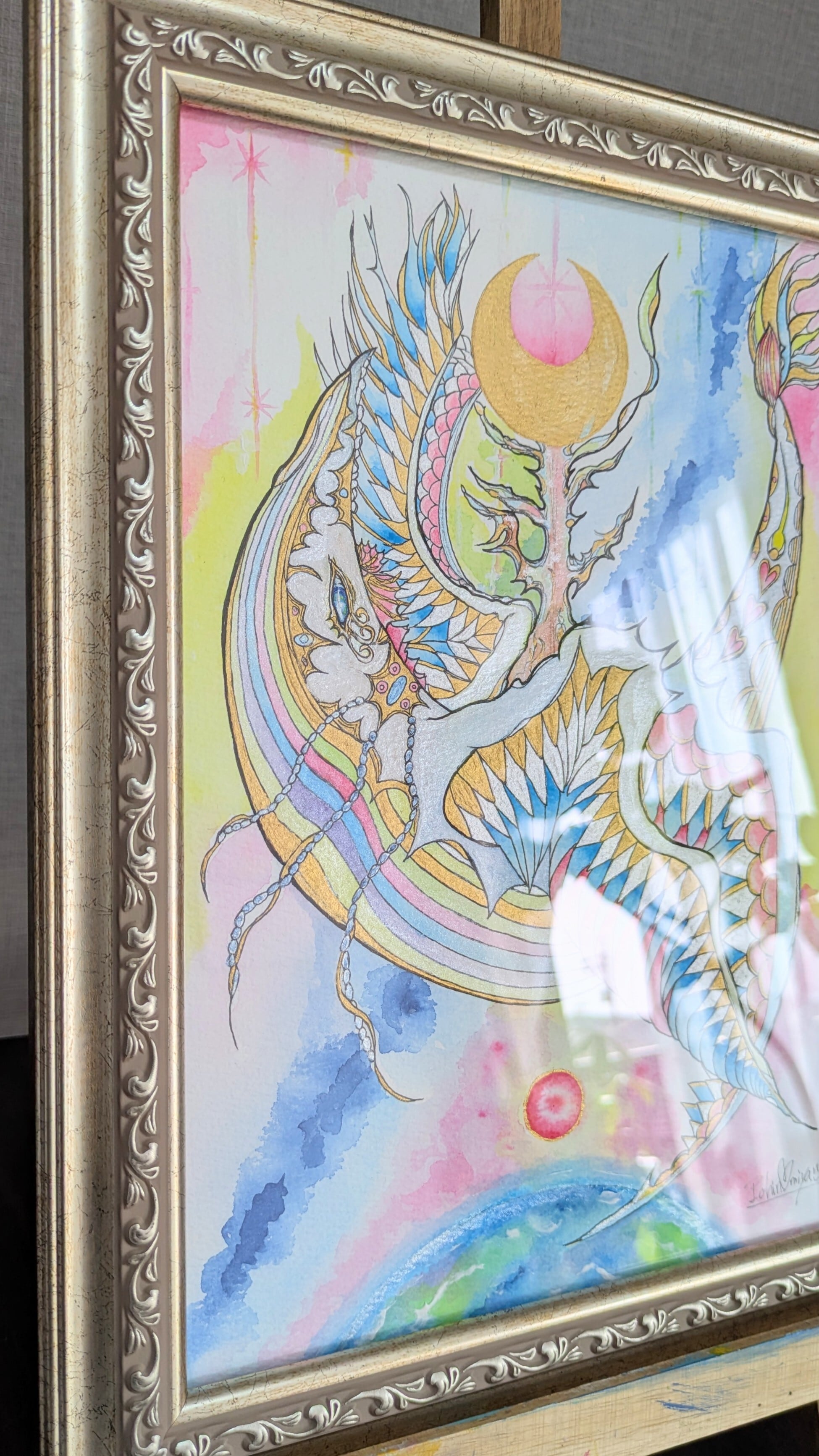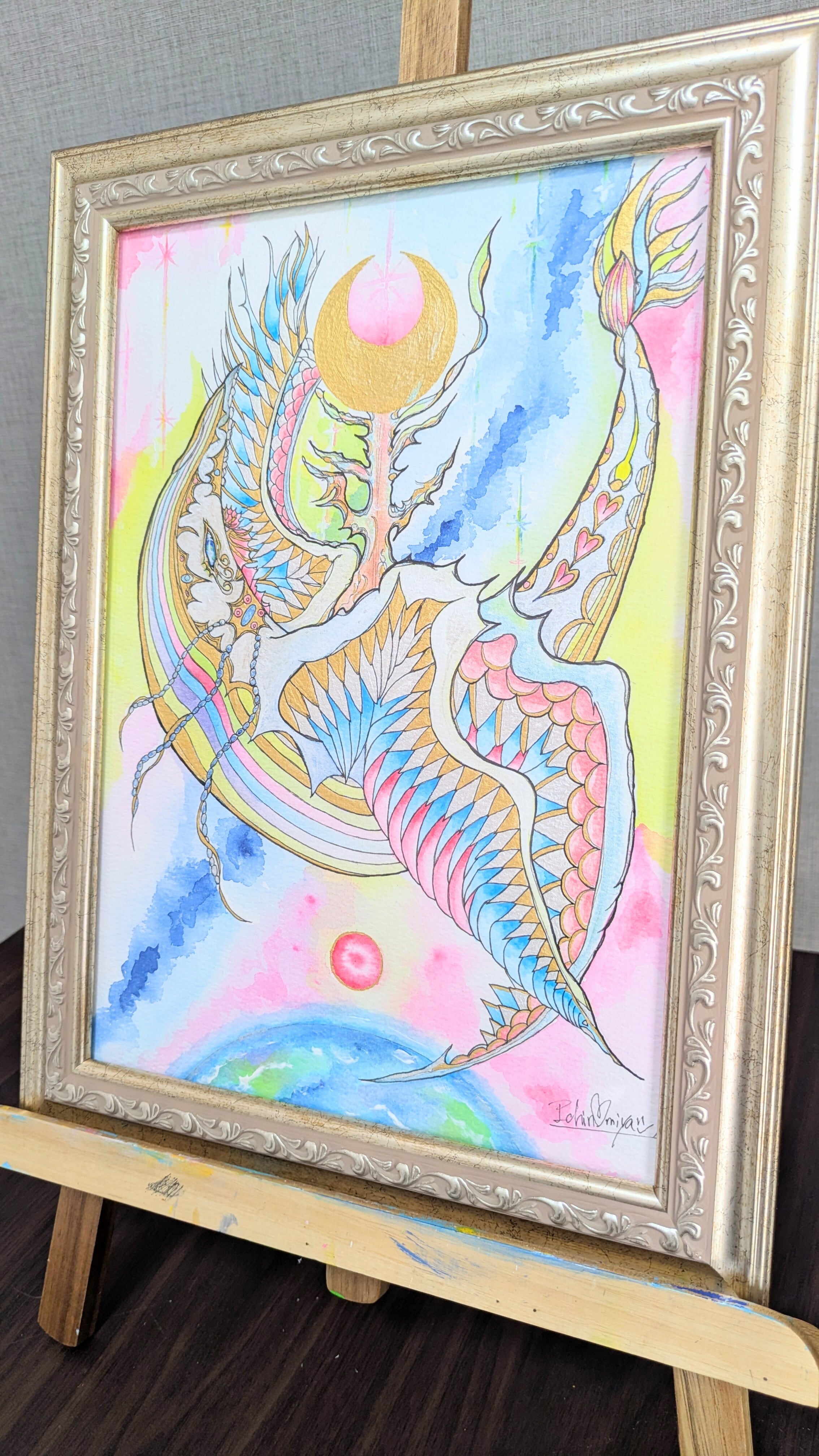 翼とも尾鰭ともつかない優美な曲線は、あらゆる負の感情や混沌を優しく包み込み、光へと浄化するフィルターとしての役割を果たしています