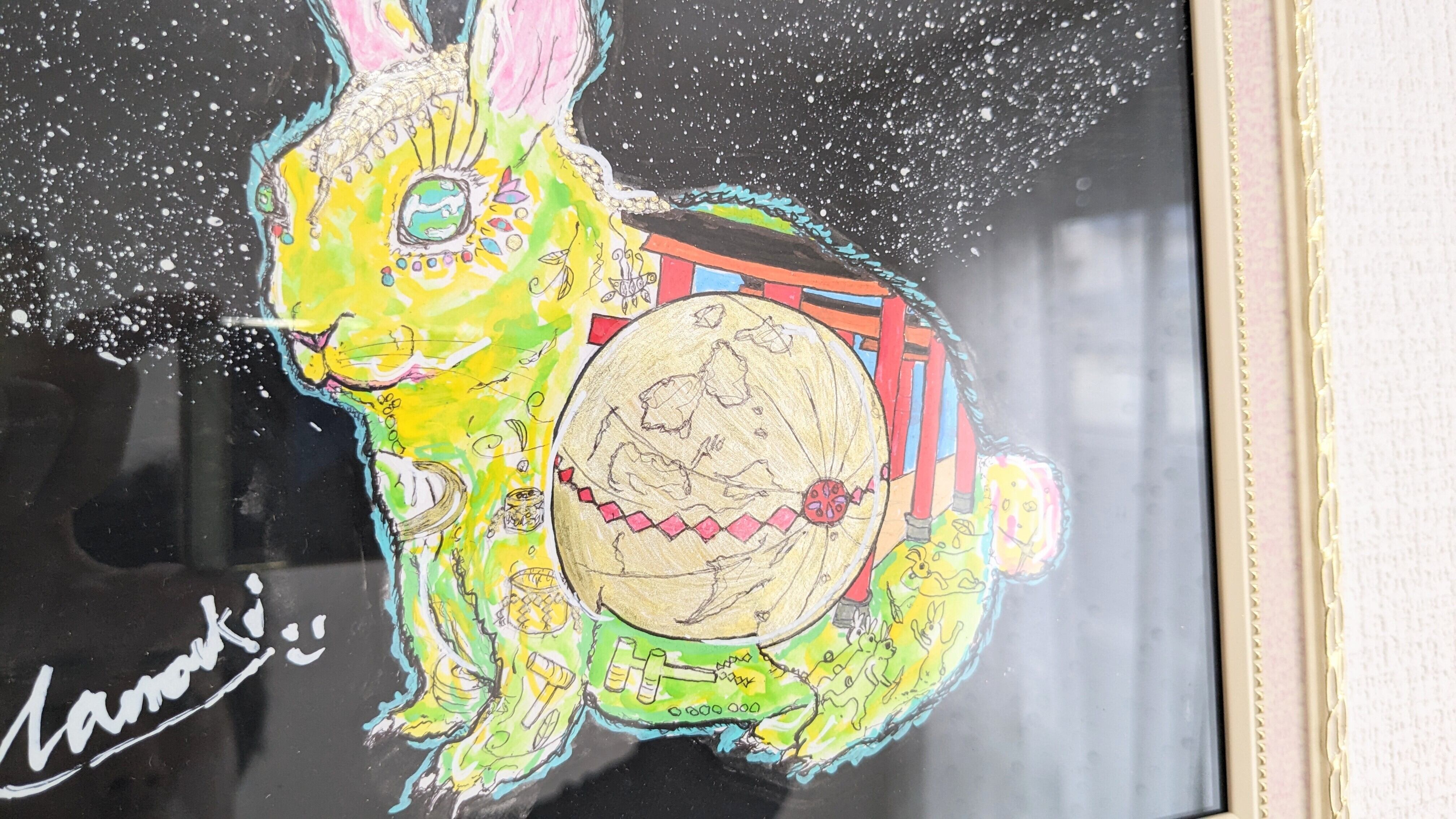 月は「月読尊」が納める空間であり、この兎は月読尊の神ノ遣イとして、お役目を果たしています。月護兎内部には、小兎たちが異次元の空間で、役目を果たしながら、のんびりと生活しています。